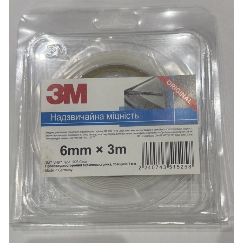 ЗМ Скотч 2-х сторонний акриловый ПРОЗРАЧНЫЙ 3м*6мм