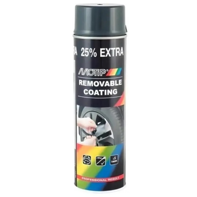 Аерозольна фарба Motip Removable Сoating Рідка гума використовують для захисту алюмінієвих, сталевих дисків і ковпаків, зовнішніх дзеркал заднього виду, решіток радіатора та інших деталей будь-якого колісного транспорту. Фарбу потрібно розпорошувати на гладкі, знежирені деталі (метал, алюміній, жорсткі пластмаси, скло). Створює тимчасове покриття: якщо вам перестає подобається колір, можна просто зняти плівку. Захищає від сколів, подряпин, бруду, вологи. Стійка до кислот та жирів